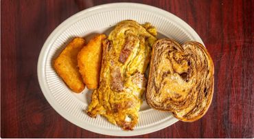 Eggs with your choice of cheese, and your choice of meat, on Cuban toast.
