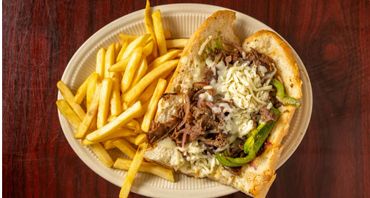 Thinly sliced rib-eye, onions, peppers, and mozzarella.